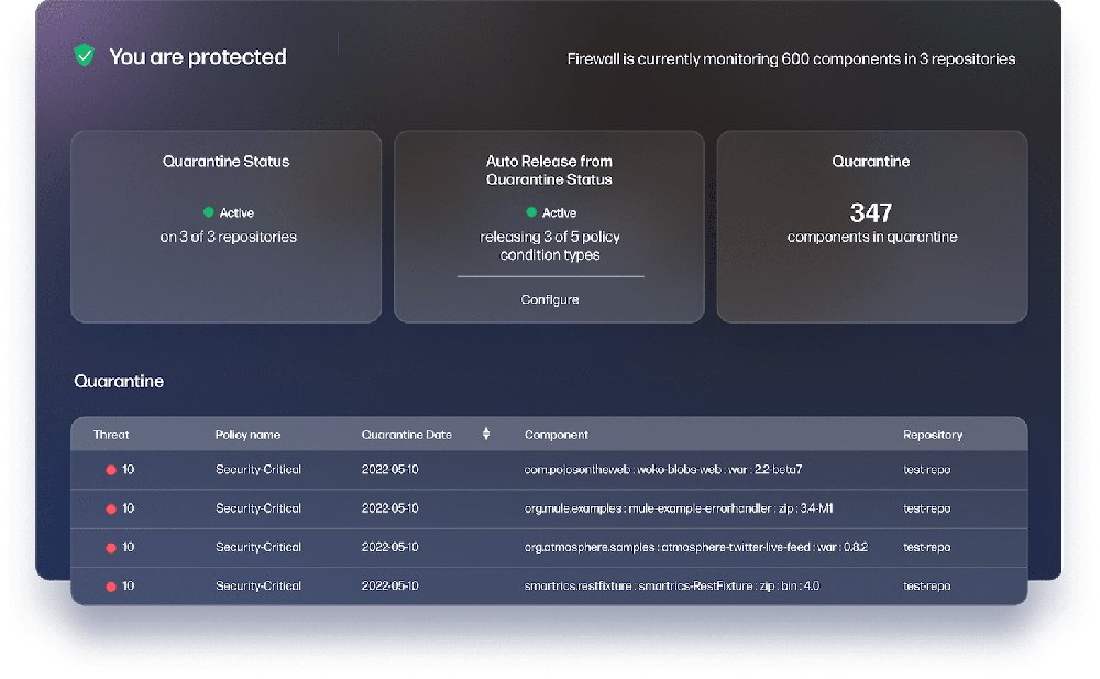 保护自己免受恶意软件攻击。Nexus Firewall 是防止已知和未知开源风险进入您的软件供应链的唯一解决方案。